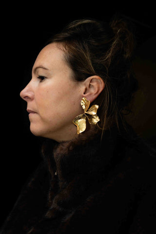 Deze goudkleurige statement oorbellen zijn een waar kunstwerk. Met hun organische, bloemachtige vorm en verfijnde reliëfstructuur stralen ze pure elegantie uit.